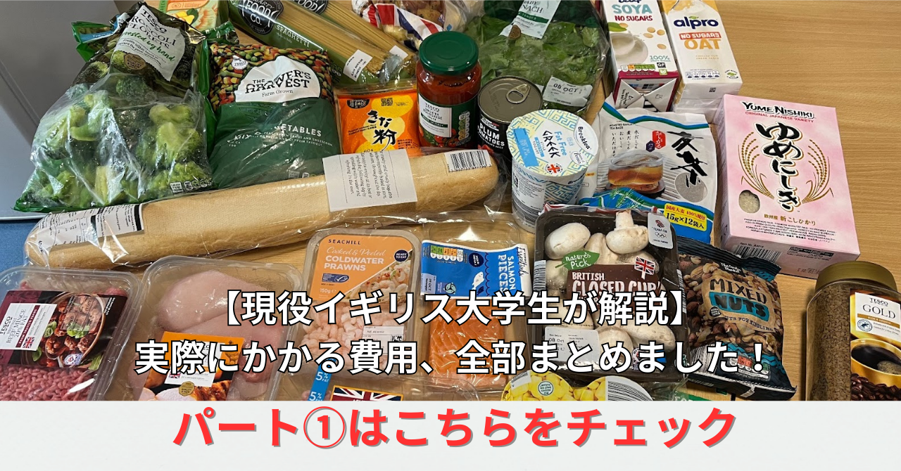 生活費食費・日用品£200〜£400/月約¥40,000〜¥80,000自炊中心なら節約可